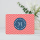 Tunga Blue, Coral Chevron Mönster | Ditt monogram Anteckningskort