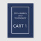 Golf Tournament Magnet. Cart #, Tournament Namn. Blåbakgrund.