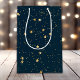 Den här julklappen är perfekt för att tillföra helgdag presenter ett litet elegant och sofistikerat inslag. Med en marin blå bakgrund med skuggande guld-stjärnor får presentväskan dina presenter att framträda under träd. Vare sig det handlar om gåvor till familj, vänner eller medarbetare, är det säkert att den här guld-stjärnpresentpåsen imponerar. Få presenter att skina den här julhelgen.