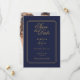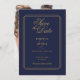 En marin snyggt (blått och guld art deco) inspirerade till inbjudan från bröllop spara datum med snyggt-typografi och ditt speciella foto på motsatt sida. Designad av Thisisnotme©