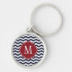 Tunga Blue & White Chevron Mönster Rund Silverfärgad Nyckelring