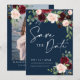 Boho Navy Burgundy och blommigt Spara datuminbjudan. Denna inbjudan kännetecknas av boho burgundy och ro och blommor med två moderna högklassigt typsnitt som formar trenderna för dagens och morgondagens festliga händelser.