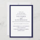 Den här eleganten, snyggtens bröllopsinbjudningar, har chicens marinblå text på vit bakgrund, intill marinens flotta.