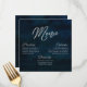 Mörk blått vattenfärgsdesign i marinen, med Silver Gnistra Typografi och vacker vattenfärgsbakgrund i struktur. Med Modern Chic Script Typsnitt. Ett trendig och en luxuriös stil - Personlig Bröllop - Bord-torg-menyer för middagsmottagning! ~ Kolla min butik för att se hela bröllop-svit för den här designen!
