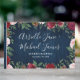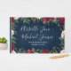 Marsala Land Rustic Bröllop Guest Bok - har en marusk blå träbakgrund med grön bakgrund, ro och annan inslag i blommigt i skuggor av rosa, marsala, burgundy med mera.