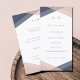 En modern och chic utformning med överlappande geometriska former som skapar olika skuggor av rosa och blått på en rent vit bakgrund med ett enkelt monogram. Matchningsinbjudan finns på: https://www.zazzle.com/blush_navy_monogram_geometric_modern_chic_wedding_invitation-256922893679510831