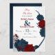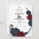 Romantisk marin blå och burgundisk blomma sparar datuminbjudan