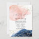 Trendiget avstånd sedan länge babyduschen via e-postinbjudan med marin blå och rosa vattenfärgsfärg stänk och guld-geometrisk ram.