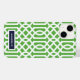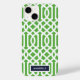 Snyggtens telefonfodral i anpassningsbar i marint blått, grönt och vitt färg. Den här designen har en preppy Moroccan trellis mönster. Anpassa den med ditt namn eller annan anpassningsbar i ett modernt skript-monogramteckensnitt. Använda designen verktyg om du vill välja valfri färg, redigera texten typsnitt och färg och ladda upp dina egna foton för att skapa ett unikt hölje för en typ av enhet!
