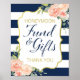 Skylt 8 x 10-tums Honeymoon Fund and Gifts Tack Sign för marin och guldfärgen Bröllop