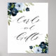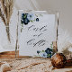 Målade vattenfärgsdammiga blå och marinblå blommor och svart skript.