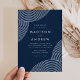 Moderna bröllopsinbjudningar med ljusblått snurrande geometriskt linjer i hörnen med marin bakgrund. Anpassa bröllopsinbjudningarna till flottan genom att lägga till dina namn och bröllop-uppgifter. Den moderna boho-bröllopsinbjudan går tillbaka till visningen som en marin bakgrund.
