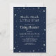 Fira din speciella dag med den här söta lilla stjärnduschinbjudan. Den här designen har texturerade stjärnor och typografi i silver glitter mot en marin blå bakgrund. Perfektens inbjudan till "Twinkle Twinkle Little Star"-temat babydusch. Fler matchande objekt finns i min butik BaraBomDesign.