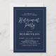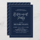 Fira din speciella dag med den här snyggten moderna Pension-partiinbjudan. Den här designen har kalligrafi för chic och ett enkelt ram med marin blå bakgrund.