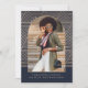 Den moderna marinblått och natura taupe studenten-kungörelsen har ett foto i en vacker båge och ett trendig som är upphöjt till geometriskt mönster.
