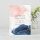 Bröllop spara datum-kort med marin blå och rosa vattenfärgsfärg stänk och guld-geometrisk ram.