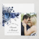 Tunga och vita blommor med fotoport från bröllop spara datum med accenter av silver-folie.