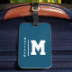 Modern marin och vit bagagetagg i monogram. Alla färg och teckensnitt kan anpassas efter dina uppgifter och stil.