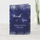 En ojämnt blå färgad, dekorerad med faux silver glitter. Inuti: 1:a av dina foton, lodrät storlekt. Ditt tackkort. Tillbaka: Andra av dina foton, landskap storlekt. Lägg till URL/länk till webbplatsen bröllop till QR-koden om du vill ha fler foton.