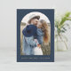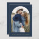 Bröllop-marinblått och Guld Spara datumkort som har ett foto på framsidan. Spara datumkorten innehåller en modern handskriven kursiv skripttypografi som är elegant, enkel och modern till använda efter att du har minimalistisk enkel bröllopsdag firande.