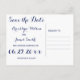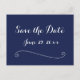 Tungt blått elegant Spara vykort för datum bröllop med utbytbar vit text