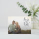 Den fantastiska, blå, kursiva skripttypografi som finns på framsidan av det här vykortet för designern och som du kan ladda upp till egen förlovning/spara datumfotot porträtt. Du kan enkelt och snabbt anpassa den här designern professionellt tryckt spara datumvykortet här och nu genom att bara skriva över exempeltexten och lägga till ett eget foto. Elegant, chic, enkelt och klassligt manus/kursiv typografi