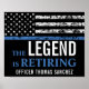 Denna design har en polisflagga med svart-vita ränder och även en tunn blå rand. Texten "The Legend is Retiring" sitter ovanför den anpassningsbara namnet på den avgående polisen, sheriffen, kaptenen eller chefen. Fira denna milstolpe med stil!