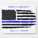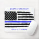 En nedsänkt och nedtryckt flagga med den tunna blå linjen är funktionen på den här tillsatta lagar-musmattan. Ovanför flagga är den blå texten " & SKYDD". Under bilden visas anpassningsbarnas text, även i blått.