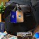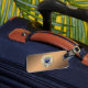 Tunn blå radmärkning med knapp på omvänd bagagebricka