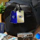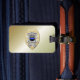 Tunn blå radmärkning med knapp på omvänd bagagebricka