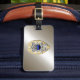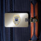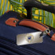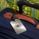Tunn blå radmärkning med knapp på omvänd bagagebricka