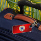 Tunn blå radmärkning med knapp på omvänd bagagebricka