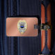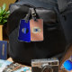 Tunn blå radmärkning med knapp på omvänd bagagebricka