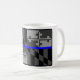 Den tunna blålinjen…, I grunden det finns tre betydelser. Den tunna blålinjen föreställer det tunt fodrar polisar går dagligen mellan liv och död. Den tunna blålinjen föreställer polisen som rollen av att avskilja bran från skapa för dåligastunder beställer från kaos. Den tunna blålinjen på svart är en minnesmärke, eller en anslutning eller ett minne mellan Officers dödade i fodra av arbetsuppgiften och de som fortsätter med deras arbetsuppgiftar i gåvan.
