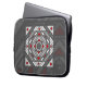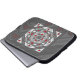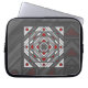 En koncentrerad kvadrat-mandala ser ut som en tunnel som ritar in tittaren med en kombination av vinklat linjer, trianglar och cirklar i skuggor av grått, rött och vitt för att nästan skapa en optisk illusion.