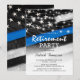 Inbjudan till polisens pensionsfest för att fira en officer som går i pension från tjänst. Med en amerikansk flagga med den tunna blå linjen, strängljus och en modern festmall.