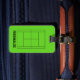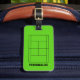 Tanniska domstolslayout dimensioner anpassningsbarnas resresgodssetikett. Unika födelsedagsgåvor till tennisspelare, tränare, barn, mamma, pappa och fläkt. Lägg till din egen text som en lustig slogan, citat, skämt, ordspråk eller namn. Exempel: Kyss mitt ansikte! Anpassningsbarnas bagageetiketter för sportpåsar och resväskor. Neon grönt eller anpassningsbar färg bakgrund.