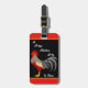 Tupp-bagaget har texten "Crazy Chicken Dam Is here" med Memphis stil tupp på svart bakgrund med rött kycklingtråd kant. Anpassa detta med ditt eget budskap. Lägg till ditt namn, adress, mobil#, e-post på baksidan med ett annat Tupp och en kycklingfot på mönster.