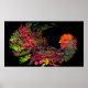 Abstraktens ljusa bild av ett Tupp med blått ögon beundrar dess magnifika, vackra svan. Cute poster för Alla hjärtans dag, födelsedag eller andra tillfälle. Den moderna författaren i fantastisk målar för ditt hem eller som gåva.