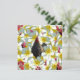 Bild är en tupp med frangipanblommor med kycklingar som går genom dem