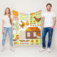 Tupp och två höns, ägg, blommor, hus, ritningar fleecefilt