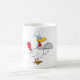 En tupp som serverar mat med en bricka. Den här designen ser ut att gälla i Mugg