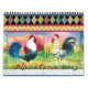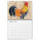 Original- vattenfärgmålningar av tuppar smyckar varje månad.