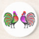 En roligt med två färgstarka varningar tuppar mot varandra.