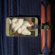 Tuppar & Hen utanför Hen House med White Gräns Bagagebricka