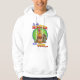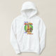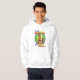Färgglatt konstverk på en hoodie som visar en tecknad, lutar på manlig uttålighet