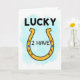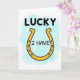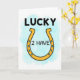 Denna design visar en gyllene hästsko centrerad på en blek himmelblå bakgrund med en mjuk, akvarell-liknande tvätt som känns lätt och luftig. Hästskon är konturerad med mörka linjer och fylld med varmt gul-guld, som en lyckotalisman man vill ha nära någon man bryr sig om 💚. Ovanför står “LUCKY” nära toppen i starka svarta sans-serif-bokstäver, som sticker ut tydligt mot den blå bakgrunden. Inuti hästskons krökning står “2 HAVE” skrivet i en lösare svart handritad stil, prydligt placerad i det öppna utrymmet som en privat hälsning mellan vänner. Små tåreformade accenter i djupare blått pryder hästskons inre kant, som ekar bakgrunden och tillför en mjuk rytm ☘️. Den enkla layouten lämnar gott om andrum, vilket får orden och symbolen att kännas som om de lutar sig mot varandra på ett stillsamt, tillgiven sätt. Den centrala hästskon förblir huvuddragen, inram