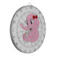 Kartong med utformning med illustration av en rosa elefant med vit mus illustrerad av Radka Kavalcova / MaxiHarmonyck