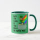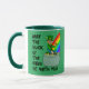 Tur i Irländska St patrick's day mugg. "Må irländarnas BUCK vara med dig." Utformning av roligtens St patrick's day. Pun, spela på ord.