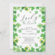 Modern & rolig irländsk Lucky in Love Shamrock-repetitionsfest inbjudan med en vacker fyra-bladig klöver ram med gyllene hästskor.